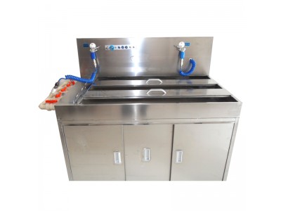 四槽洗法:初洗-酶洗-灭菌(2%碱性戊二醛)-冲洗;